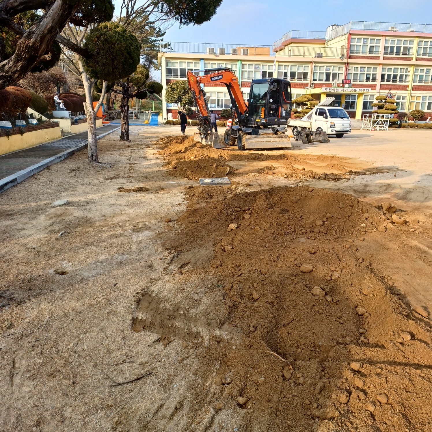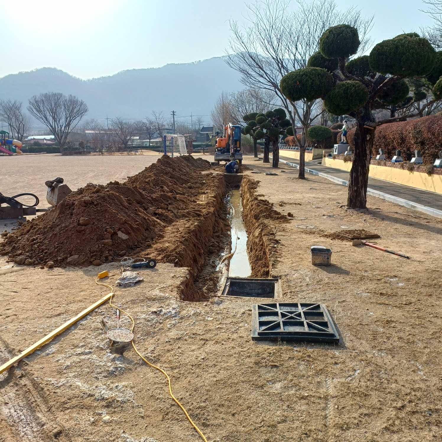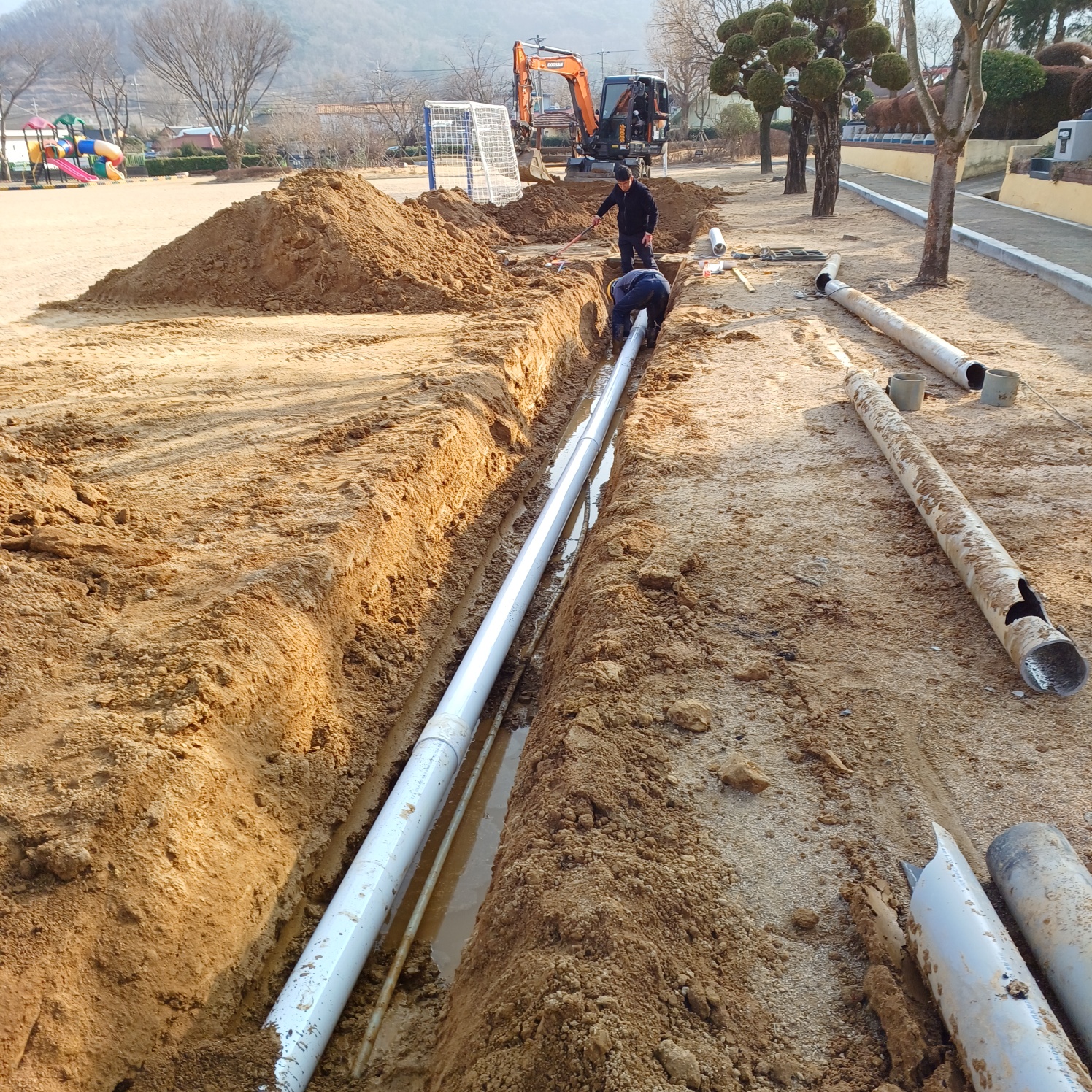 교사동 오폐수관로 고압 세척 및 오폐수관로 일부 교체 작업을 하였습니다.